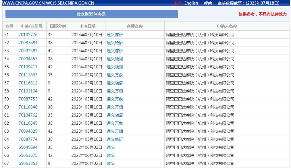 #商标# 阿里同时注册的还有:通义千问、通义博研、通义万相、通义万象、通义晓语、通义晓问、通义晓蜜、通义云、通义听悟、通义百炼。